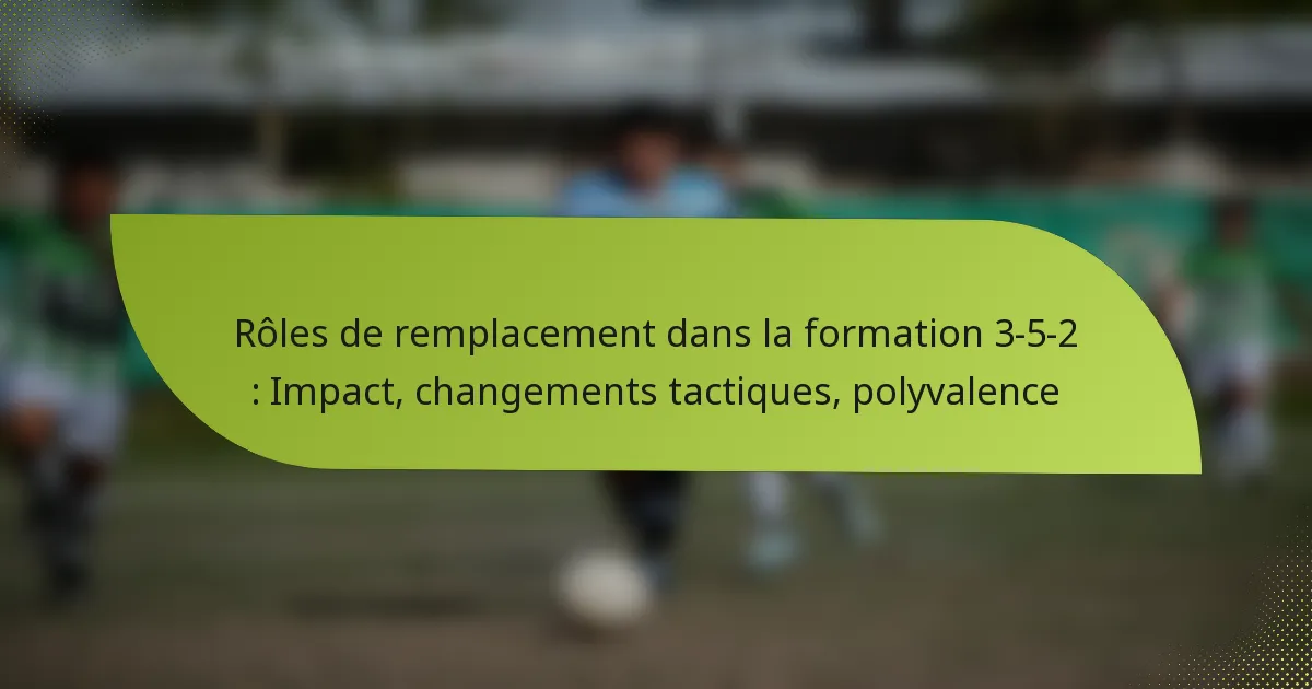 Dans la formation 3-5-2, les remplaçants sont essentiels pour injecter une nouvelle énergie et une flexibilité tactique dans le jeu. Leur capacité à adapter les rôles et les responsabilités peut entraîner des changements significatifs dans la stabilité défensive, le contrôle du milieu de terrain et les opportunités de marquer, influençant finalement l’issue du match. Quels rôles jouent les remplaçants dans la formation 3-5-2 ? Les remplaçants dans la formation 3-5-2 jouent des rôles cruciaux qui peuvent influencer de manière significative l’issue du match. Leurs responsabilités varient en fonction des besoins tactiques de l’équipe, impactant la stabilité défensive, le contrôle du…