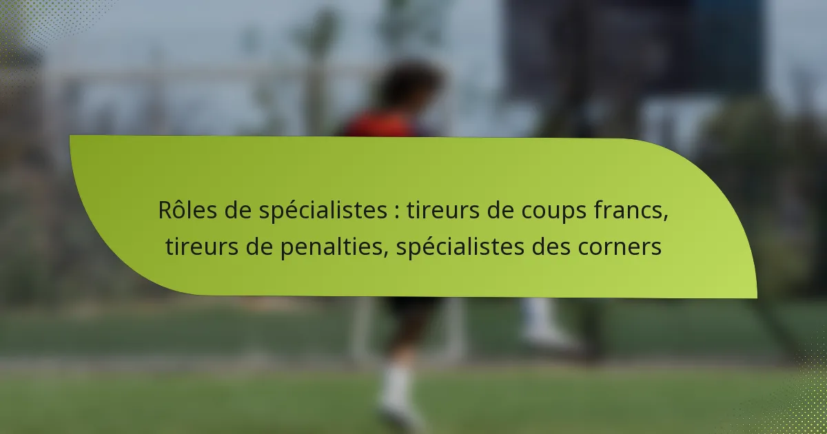 Dans le football, des rôles spécialisés tels que les tireurs de coups francs, les tireurs de pénalty et les spécialistes des corners jouent un rôle crucial dans les situations de coups de pied arrêtés. Chaque rôle exige des compétences et des attributs spécifiques qui peuvent grandement influencer la stratégie et le succès d’une équipe sur le terrain. La maîtrise de ces domaines améliore non seulement les opportunités de marquer, mais ajoute également un avantage tactique au jeu. Quels sont les rôles spécialisés dans le football liés aux coups de pied arrêtés ? Les rôles spécialisés dans le football liés aux…